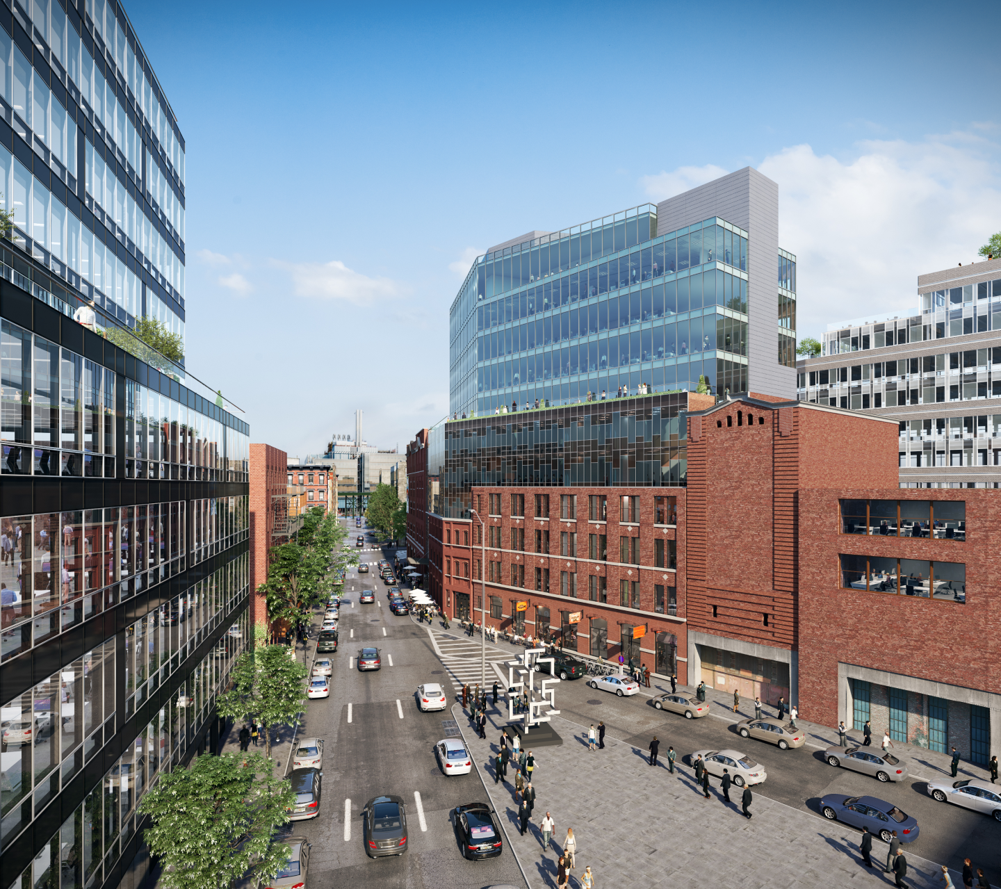 Architectural Digest Magazine highlights the interconnecting landscaped pathways and pedestrian plazas connecting the West Harlem community to the Factory District from West 125th Street to 128th Street.